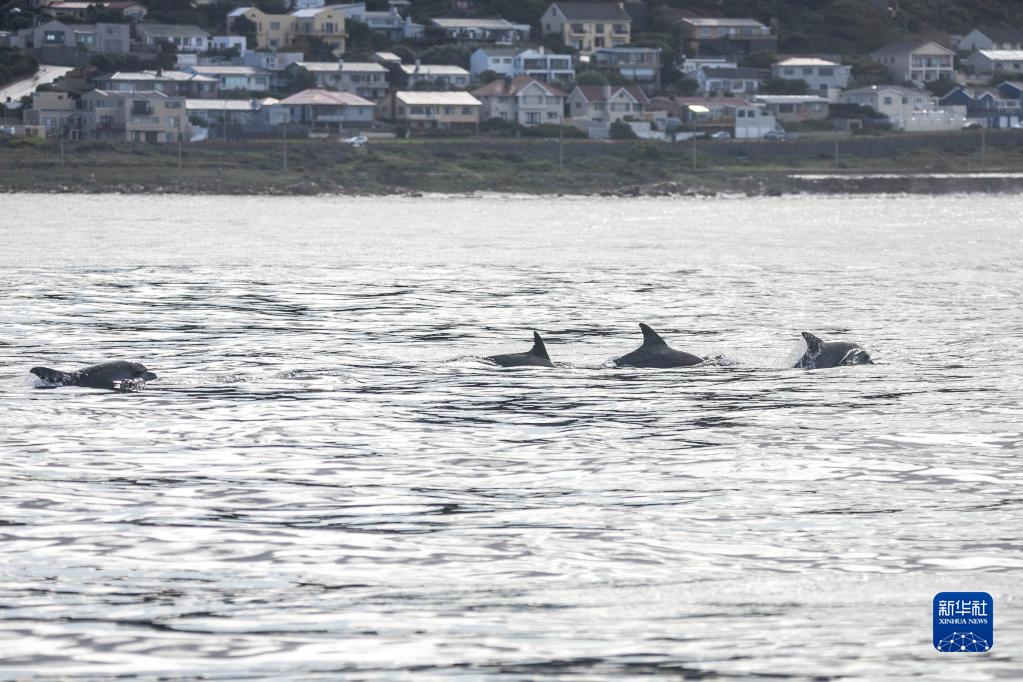 6月15日,海豚在南非开普敦福尔斯湾游弋。