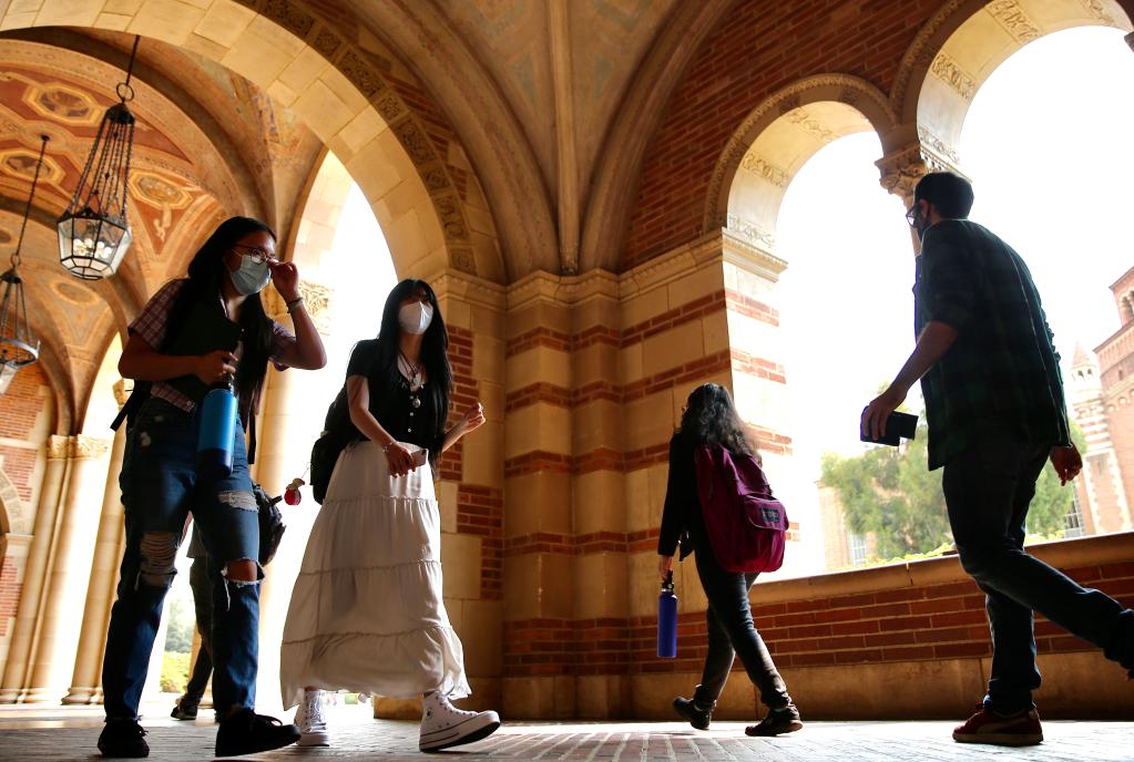 美国加州大学洛杉矶分校校园内拍摄的学生。新华社发