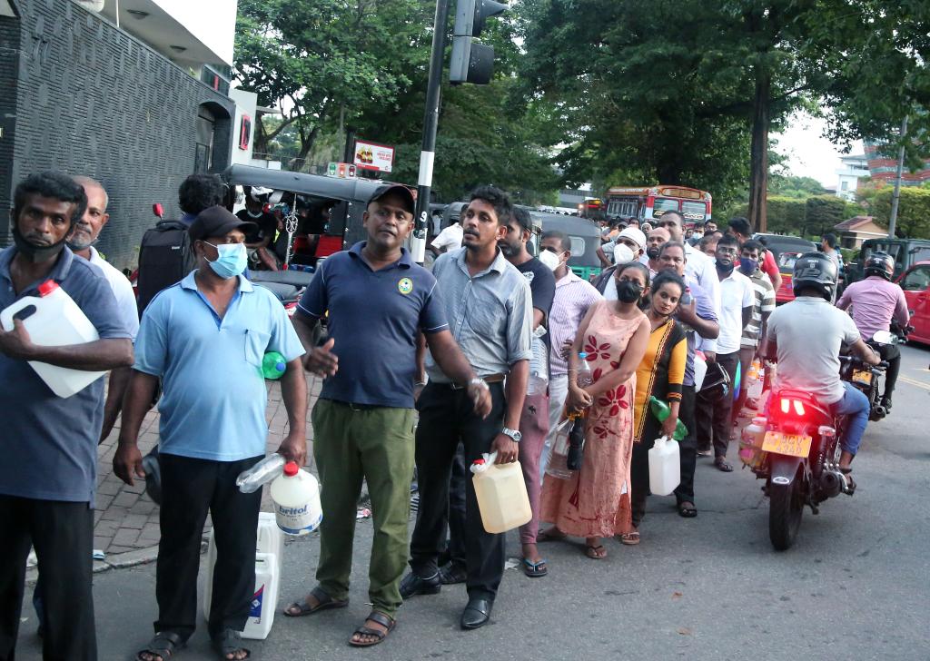 5月19日,民众在斯里兰卡首都科伦坡一处加油站前排队等待购买煤油。(新华社发,阿吉特·佩雷拉摄)