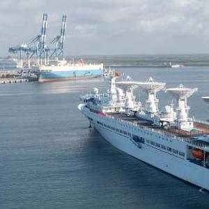 这是8月16日在斯里兰卡南部汉班托塔港附近拍摄的中国远望5号船。新华社发(汉班托塔国际港口集团供图)