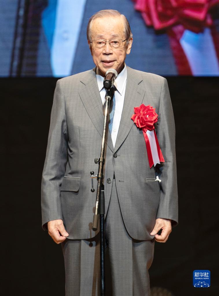 9月16日,在日本东京,日本前首相福田康夫在纪念中日邦交正常化50周年晚会上致辞。新华社发(叶茂摄)
