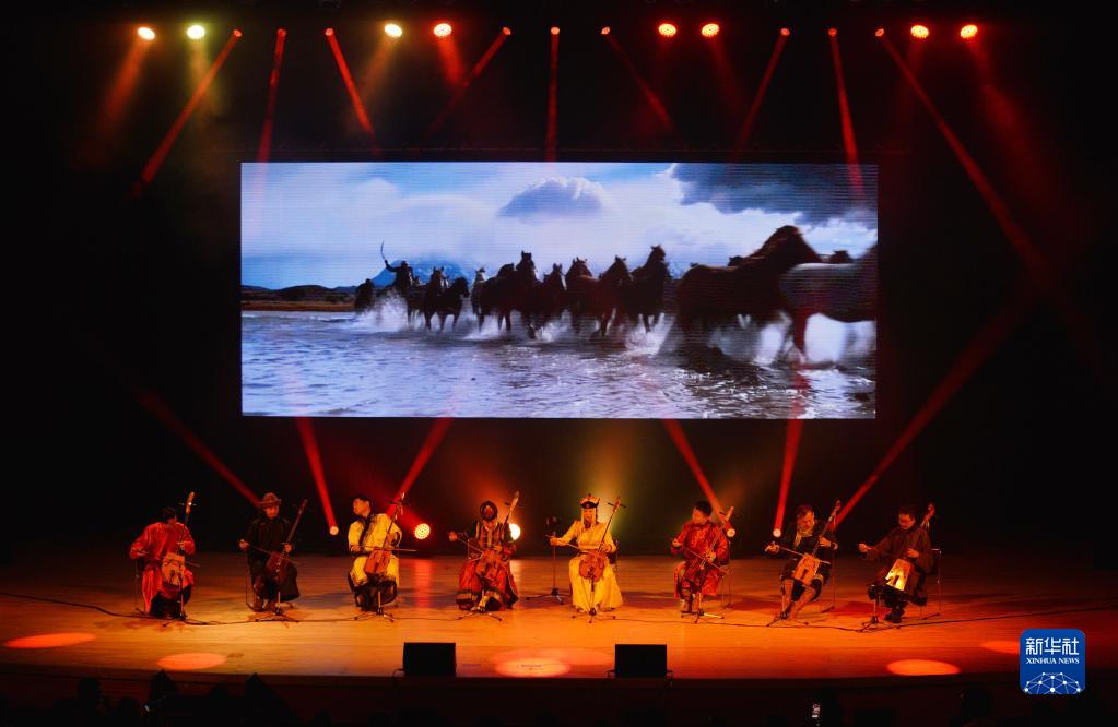 9月16日,表演者在日本东京举行的纪念中日邦交正常化50周年晚会上演奏马头琴。新华社发(尚勇摄)