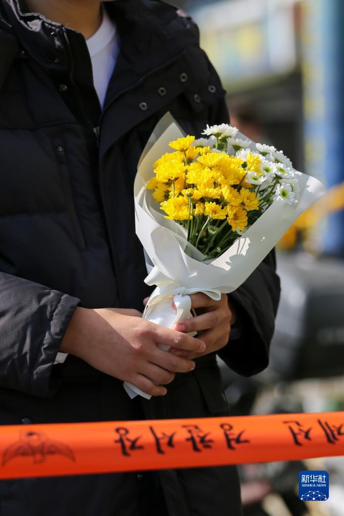 10月30日,在韩国首尔,一名男子手持鲜花来到踩踏事故现场。 新华社记者 王益亮 摄