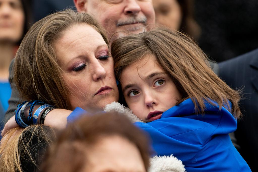 1月6日,在美国首都华盛顿的国会大厦外,一对母女参加“国会山骚乱”两周年纪念仪式。新华社记者刘杰摄