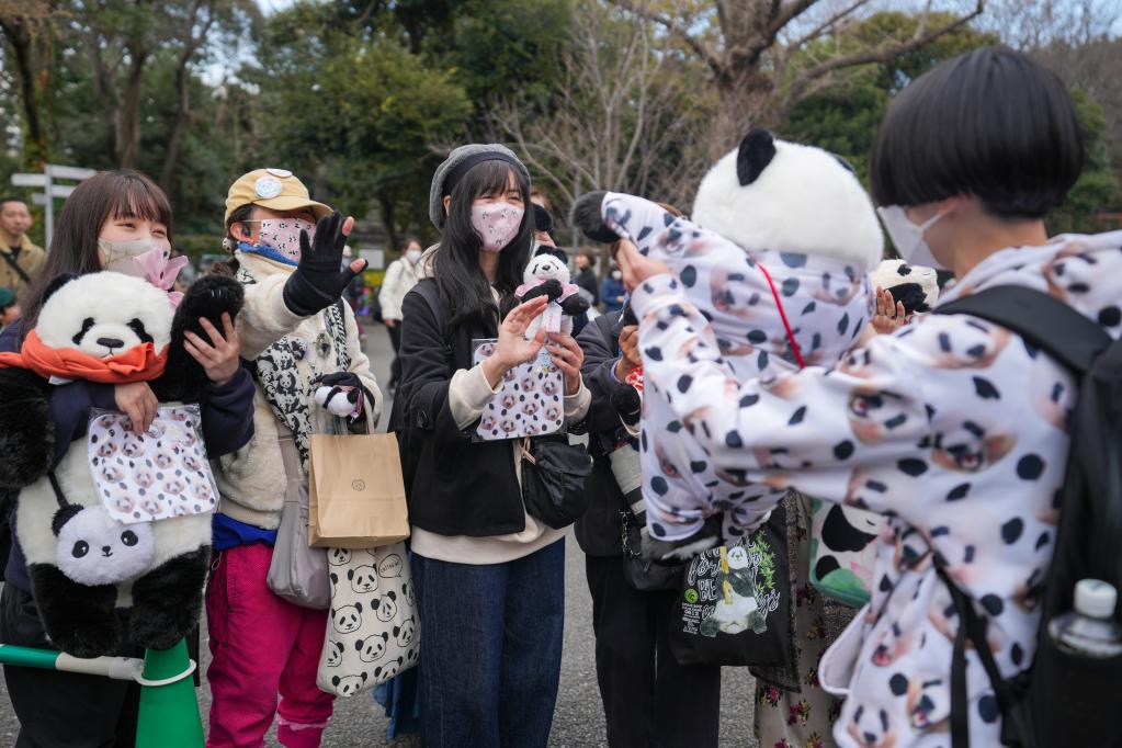 2月19日,在日本东京上野动物园,游客排队与大熊猫“香香”告别。新华社记者 张笑宇 摄