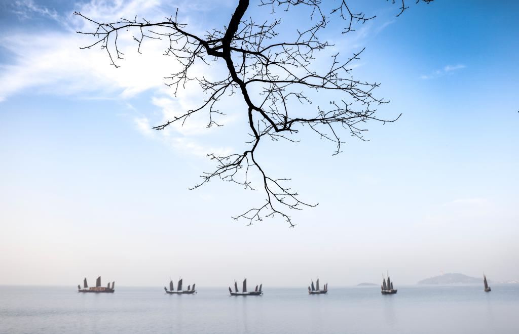 2021年3月13日拍摄的江苏省无锡市太湖鼋头渚景区晨景。 新华社记者杨磊摄