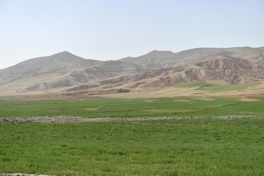 通过对2.2万亩砂石地和山坡地进行改良治理,几年前还是一片荒漠的宁夏海原县甘盐池,现已变得绿意盎然(2015年6月4日摄)。 新华社记者李然摄