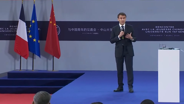 4月7日,是马克龙访华之行的最后一日。当天他从北京出发前往广州,首先参观访问中山大学,在南校园体育馆作简短演讲后与学生们交流互动。