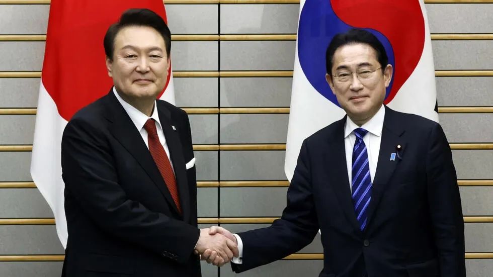 于是,韩日领导人迅速实现互访,恢复中断近12年的“穿梭外交”。尹锡悦3月中旬访问东京,受到高规格接待,觥筹交错间,似乎风光无限。本月7日至8日,岸田回访首尔,更是给尹锡悦送上一份“意外之喜”。