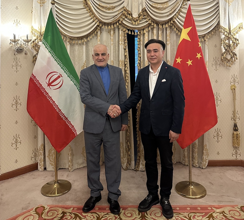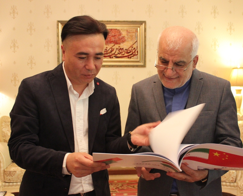 伊朗驻华大使穆罕默德·克沙瓦尔兹扎德会见电影《长安·长安》导演张忠(右)