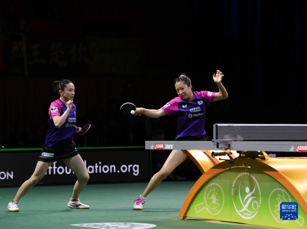当日,在南非德班进行的2023年世界乒乓球锦标赛女子双打决赛中,中国选手陈梦/王艺迪以3比0战胜韩国选手田志希/申裕斌,夺得冠军。
