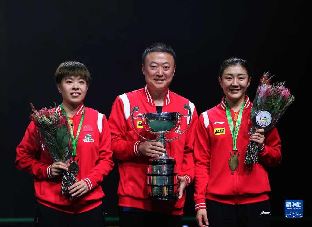 当日,2023年世界乒乓球锦标赛女双颁奖仪式在南非德班举行。在女双决赛中,中国组合陈梦/王艺迪以3比0战胜韩国组合田志希/申裕斌,夺得冠军。