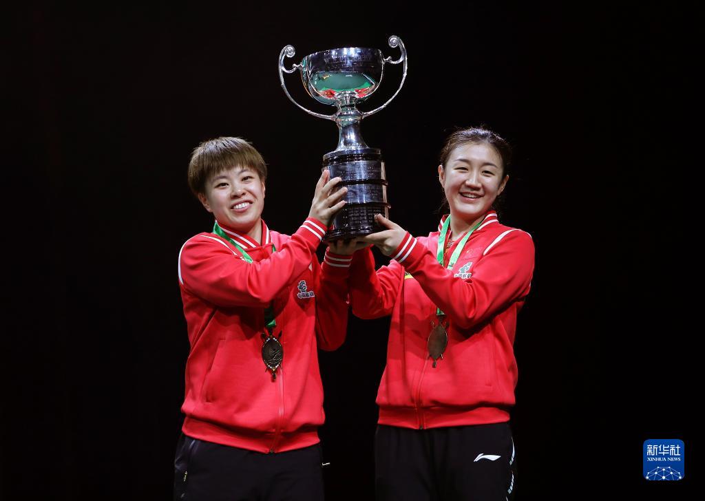 当日,2023年世界乒乓球锦标赛女双颁奖仪式在南非德班举行。在女双决赛中,中国组合陈梦/王艺迪以3比0战胜韩国组合田志希/申裕斌,夺得冠军。