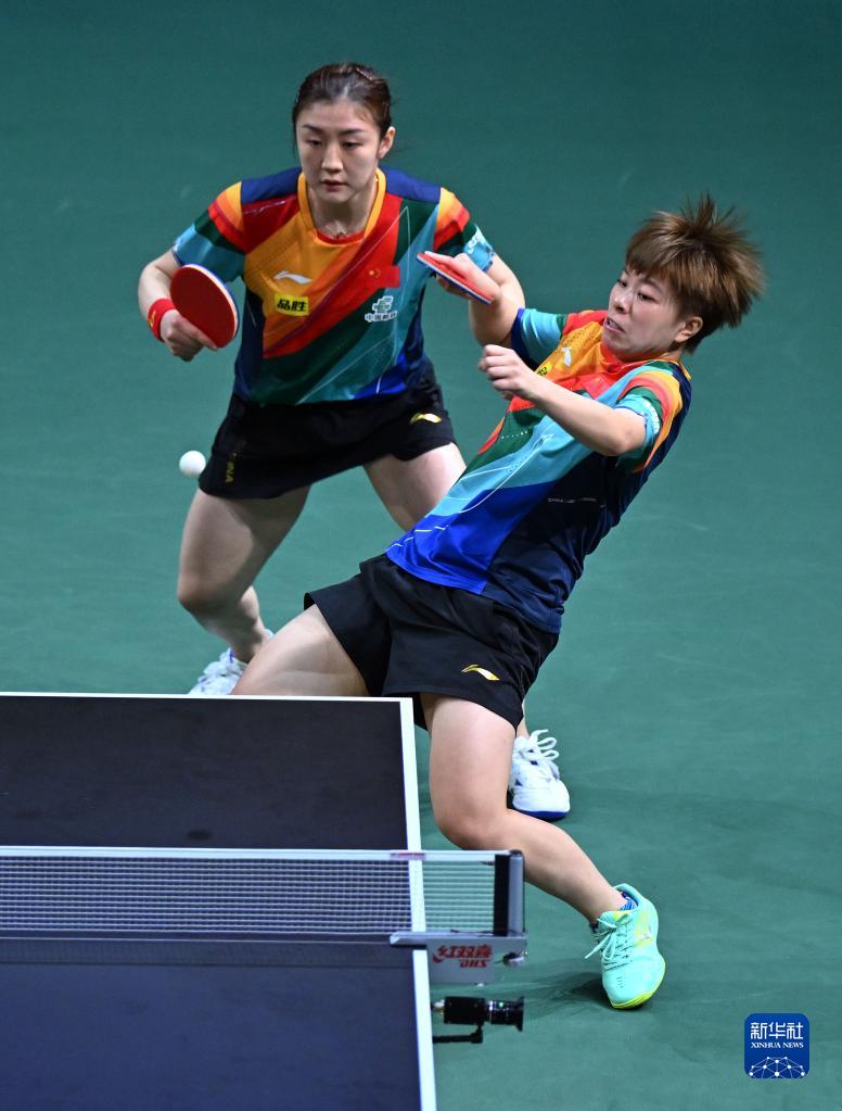 当日,在南非德班进行的2023年世界乒乓球锦标赛女子双打决赛中,中国选手陈梦/王艺迪以3比0战胜韩国选手田志希/申裕斌,夺得冠军。