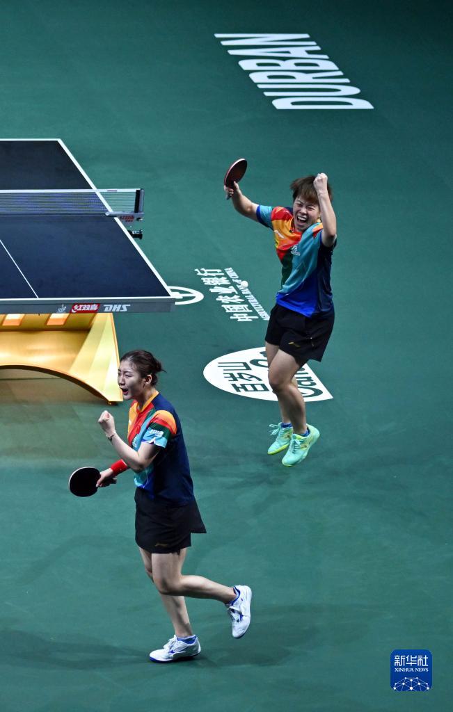 当日,在南非德班进行的2023年世界乒乓球锦标赛女子双打决赛中,中国选手陈梦/王艺迪以3比0战胜韩国选手田志希/申裕斌,夺得冠军。