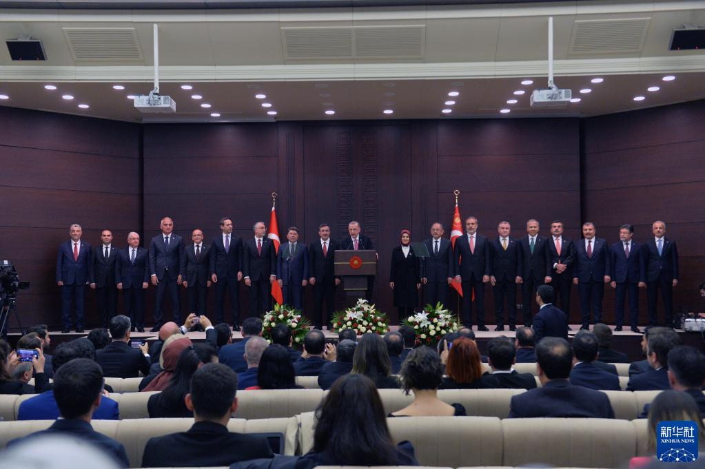6月3日,土耳其总统埃尔多安在首都安卡拉宣布新一届内阁成员名单。新华社发(穆斯塔法·卡亚摄)