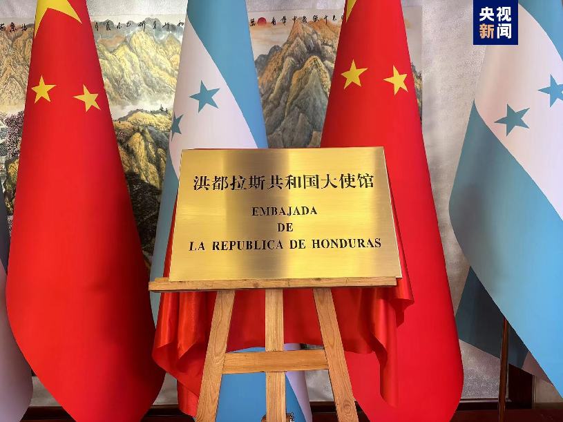 6月11日上午,洪都拉斯驻华大使馆在北京开馆,洪都拉斯外长雷纳和中国外长秦刚共同为大使馆揭牌。