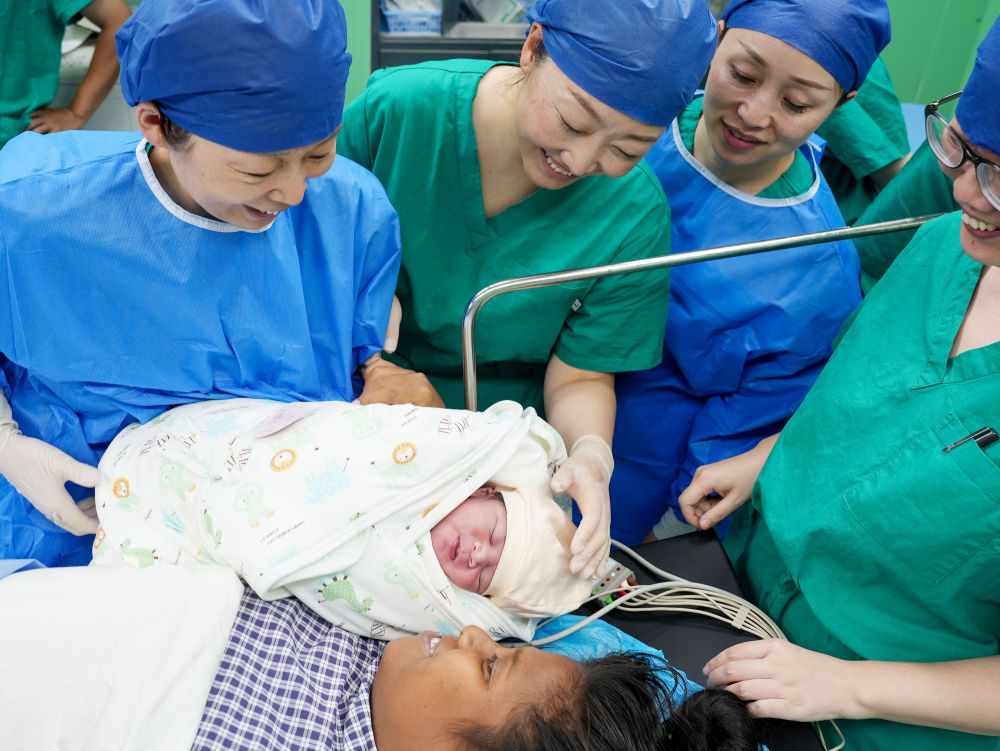 中国海军“和平方舟”号医院船在基里巴斯为29岁的塔拉瓦居民德阿瑞接生了一名“和平宝宝”(2023年7月16日摄)。新华社发(刘伟 摄)