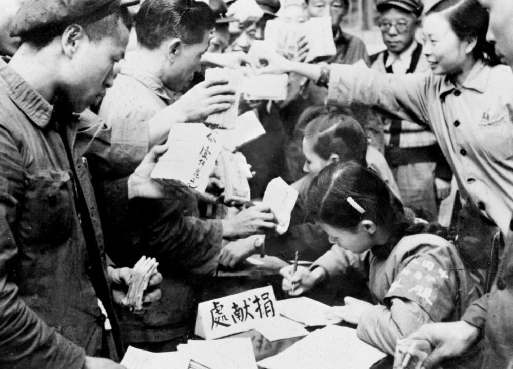 全国各地工商界踊跃捐献款项,支援志愿军。这是重庆市工商业者捐献的情形。新华社发(资料照片)