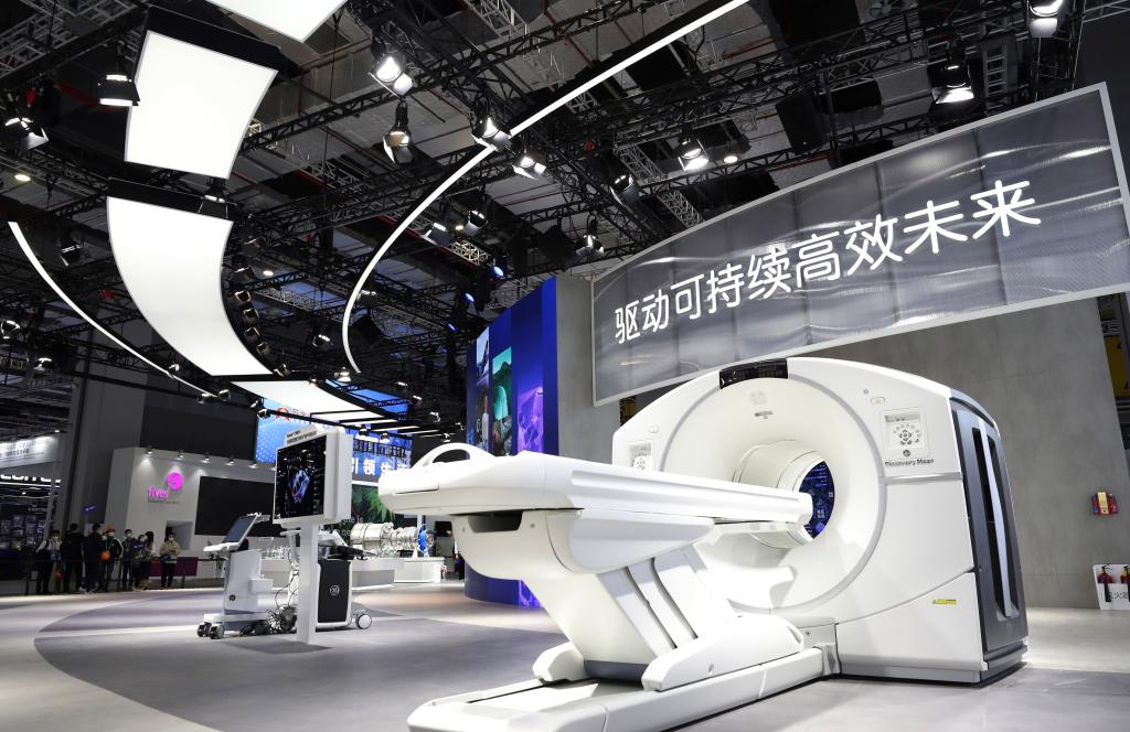 2022年11月2日拍摄的美国GE公司在进博会展台展出的一台大型医疗设备。(新华社记者方喆摄)