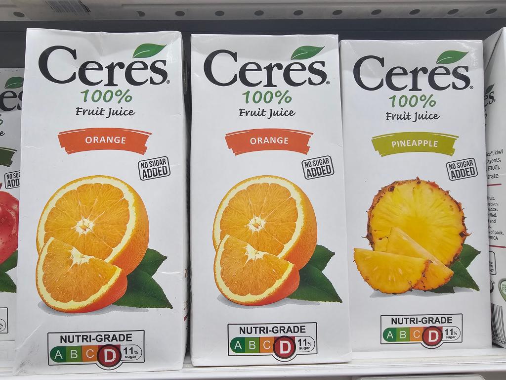 记者在新加坡超市看到,包括果汁、牛奶在内的大部分瓶装或盒装饮料均在醒目位置印有营养等级标签。