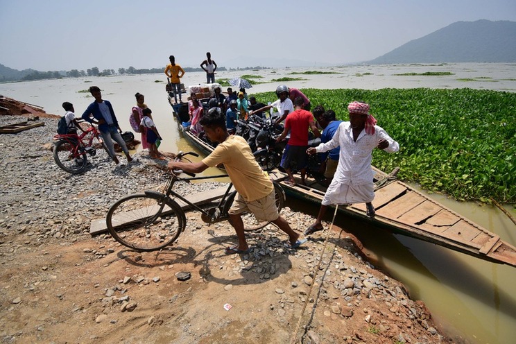 8月30日,人们在印度东北部阿萨姆邦一处洪灾区域乘船出行。新华社发