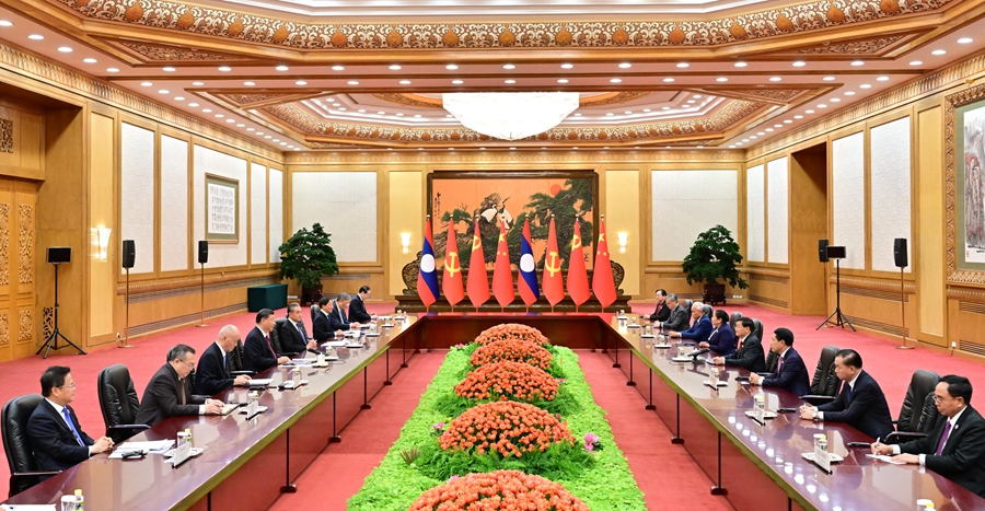 习近平指出,10年来,中老命运共同体建设不断取得重要进展。在当今世界变乱交织、百年变局加速演进背景下,中老命运共同体建设更具时代价值和战略意义,具有积极示范引领作用。中老双方要以签署构建中老命运共同体新的五年行动计划为抓手,为两党两国关系赋予新内涵,为地区乃至世界和平稳定和发展繁荣注入新动能。