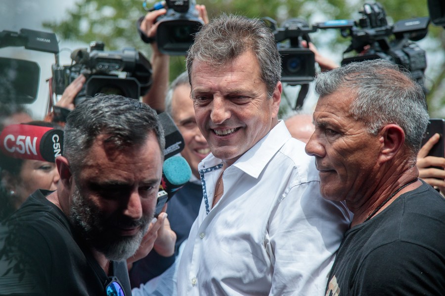 10月22日,阿根廷总统候选人塞尔希奥·马萨前往布宜诺斯艾利斯省蒂格雷市的一处投票站投票。(新华社发 卢西亚诺·冈萨雷斯摄)