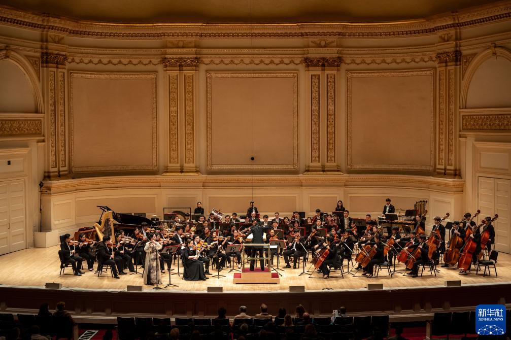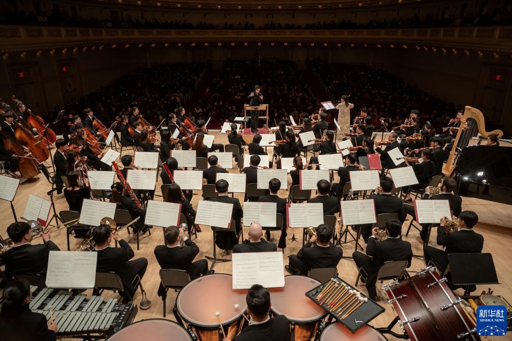 11月24日,来自中央音乐学院交响乐团的艺术家在美国纽约卡内基音乐厅进行演出。新华社发(迈克尔·维奥拉果摄)
