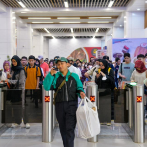 12月25日,乘客在印度尼西亚雅加达哈利姆站候车大厅刷票进站。新华社记者 徐钦 摄