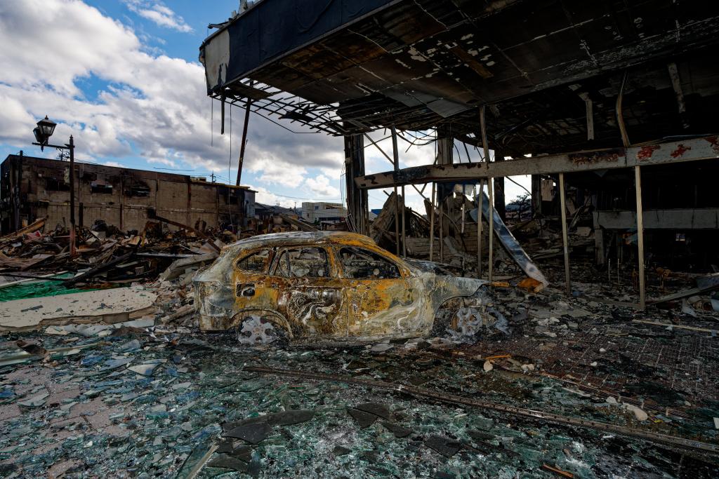 ↑1月4日,日本石川县轮岛市“轮岛早市”被大火烧成废墟。 新华社记者 张笑宇 摄