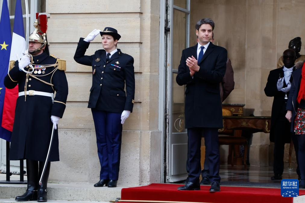 1月9日,加布里埃尔·阿塔尔(左三)在法国巴黎总理府出席权力交接仪式。新华社发(里特·埃斯摄)