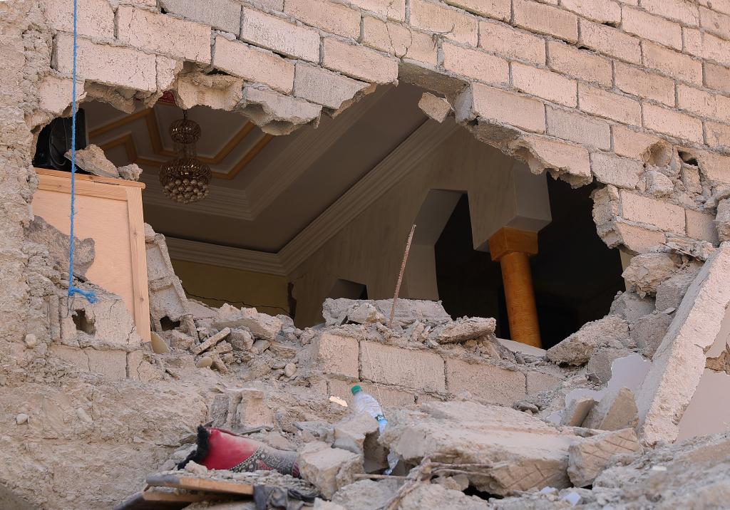↑2023年9月10日在摩洛哥震中附近的艾米兹米兹村拍摄的受损建筑。