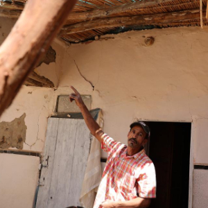 此次摩洛哥地震的震中位于中部城市马拉喀什的南部山区。9月9日一大早,我们便出发前往了当时道路可抵达的重灾区:艾米兹米兹村。地震的残酷、苦难的真实,就这样猛烈地展现在我面前。在村民的指引下,我们走进了他们遭地震损毁的家……满地的瓦砾、破碎的杯具器皿、裂开的墙体以及坍塌的房屋,似乎都在无声的诉说着它们的哀伤。