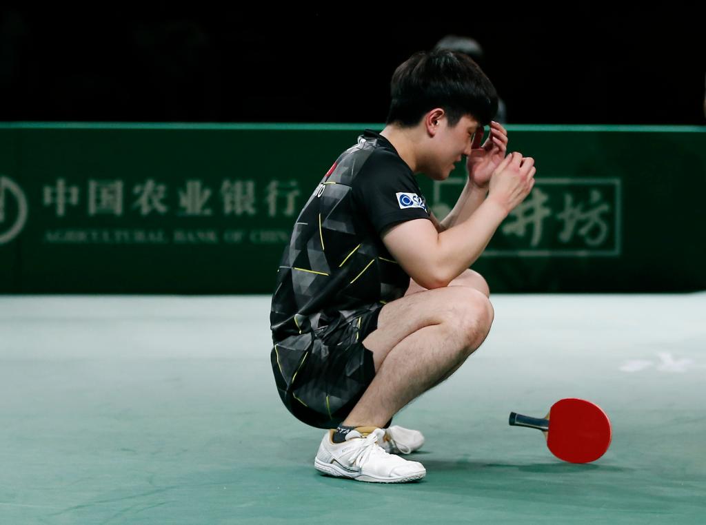 ↑2023年5月26日,张本智和在比赛失利后。当日,在南非德班进行的2023年世界乒乓球锦标赛男子单打四分之一决赛中,日本选手张本智和以2比4不敌中国选手梁靖崑,无缘四强。