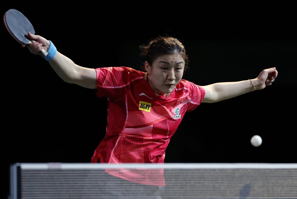 ↑2023年5月25日,陈梦在比赛中回球。当日,在南非德班进行的2023年世界乒乓球锦标赛女子单打八分之一决赛中,中国选手陈梦以4比2战胜日本选手木原美悠,晋级八强。