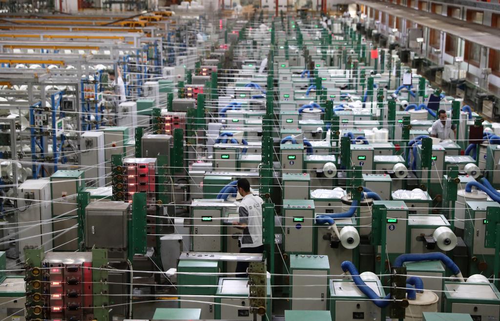 ↑2023年6月26日,在埃及苏伊士巨石埃及公司,员工在玻璃纤维生产线上工作。