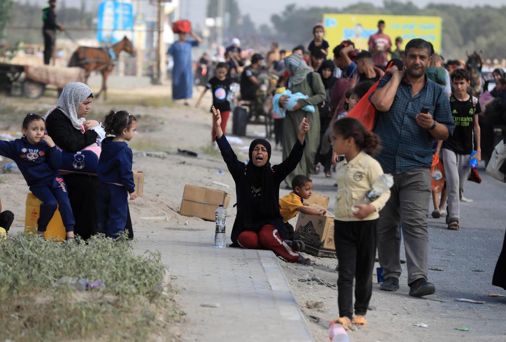 ↑2023年11月10日,在加沙地带中部地区,加沙地带北部的民众被迫向南撤离。 新华社发(亚西尔·库迪摄)