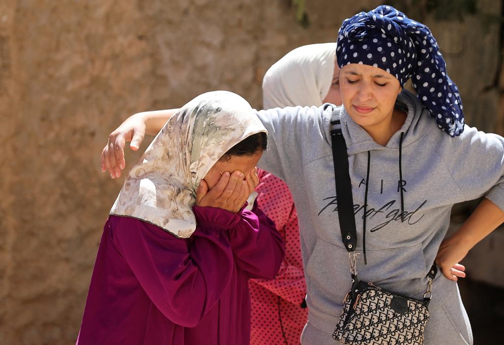 ↑2023年9月10日,在摩洛哥震中附近的艾米兹米兹村,一名女子掩面哭泣。