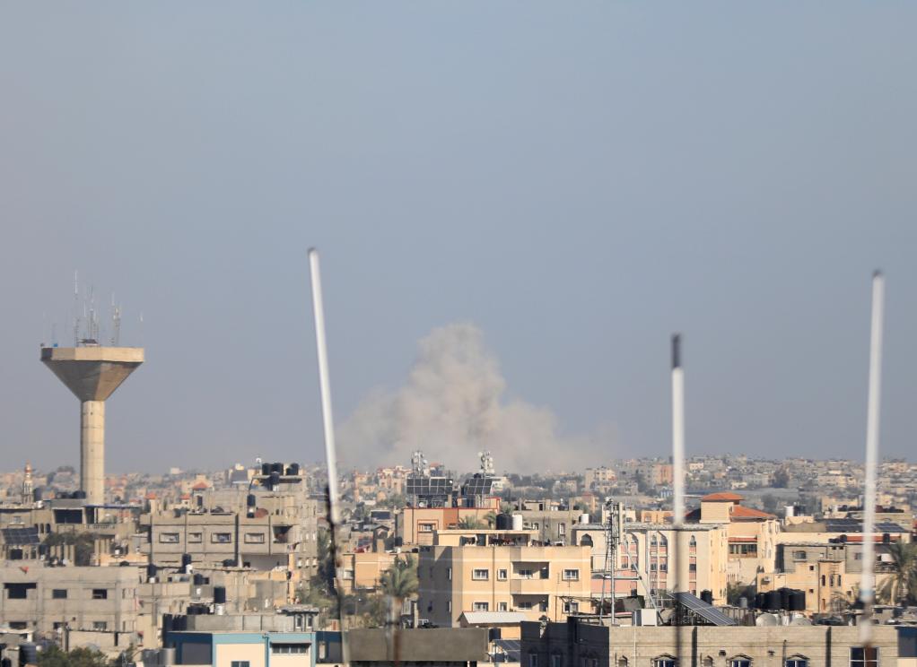 1月13日,加沙地带南部城市汗尤尼斯遭以色列空袭后升起浓烟。新华社发(亚西尔·库迪摄)
