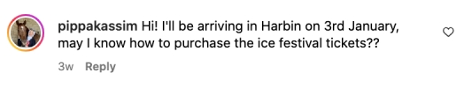 粉丝的行前攻略和旅行咨询让哈尔滨社媒的实用性大增,粉丝通过留言和私信咨询冰雪大世界购票信息及各种娱乐设施的位置。
