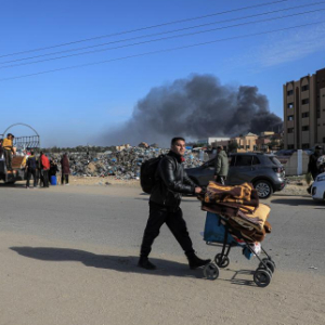 1月22日,在加沙地带南部城市汗尤尼斯,人们逃离家园。新华社发(里泽克·阿卜杜勒贾瓦德摄)