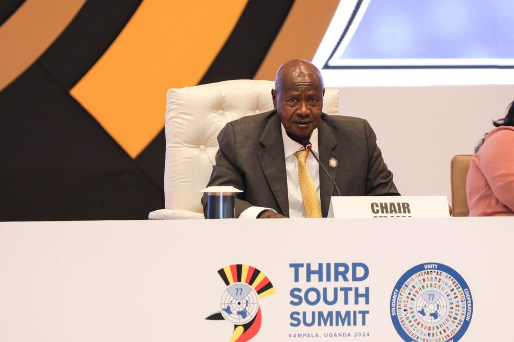 1月21日,乌干达总统穆塞韦尼在乌干达首都坎帕拉举行的第三届南方首脑会议上发言。新华社发(阿佳拉·纳瓦达摄)