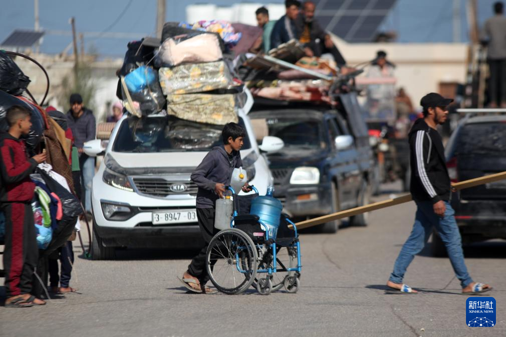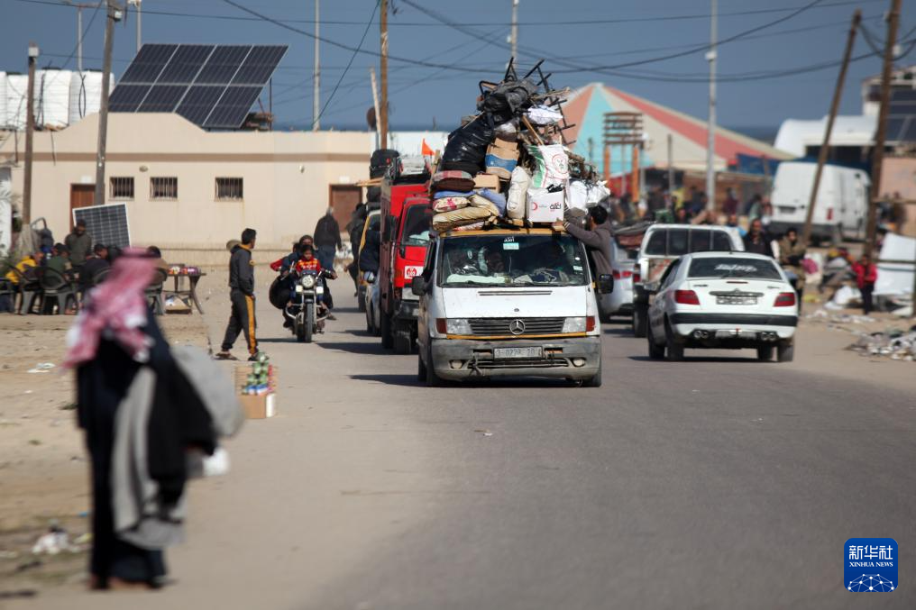 1月22日,在加沙地带南部城市汗尤尼斯,人们逃离家园。新华社发(里泽克·阿卜杜勒贾瓦德摄)