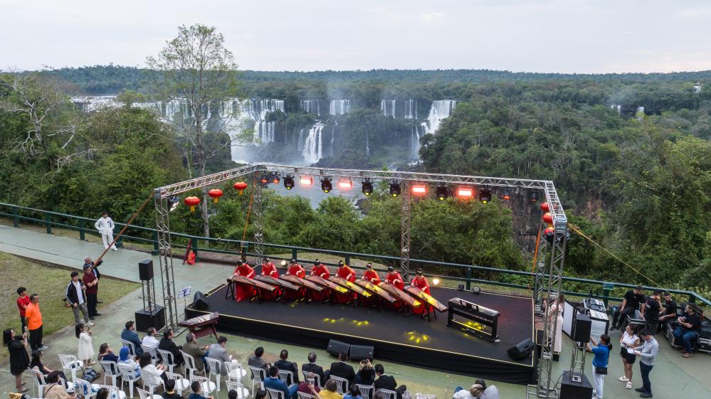 2023年9月29日晚,巴西圣保罗亚洲文化中心主办的“瀑布之夜”中秋晚会在世界三大瀑布之一的巴西伊瓜苏瀑布前举行,来自巴西、阿根廷等地的华侨华人与巴西各界友人汇聚一堂,共同庆祝中秋佳节。