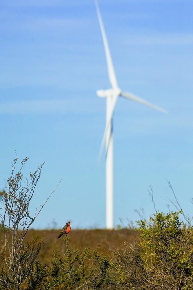 ↑2023年6月12日在阿根廷丘布特省马德林港拍摄的罗马布兰卡一期风电场。