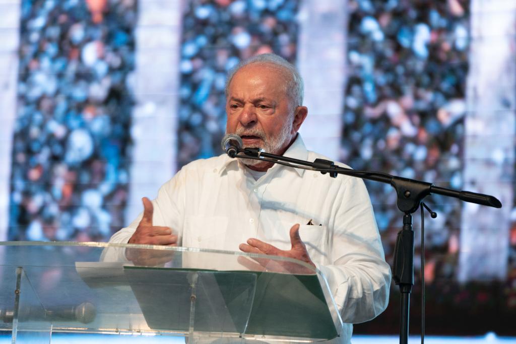 ↑2023年7月3日,在巴西伊列乌斯,巴西总统卢拉出席巴西东西铁路项目开工仪式并致辞。