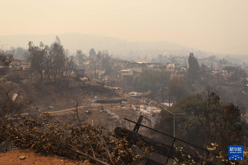 这是2月3日在智利瓦尔帕莱索大区比尼亚德尔马市拍摄的在森林火灾中烧毁的房屋。新华社发