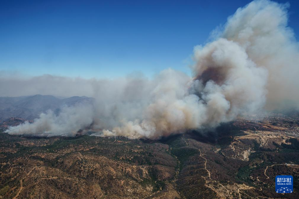 这是2月3日从直升机上拍摄的智利瓦尔帕莱索大区森林火灾情况。新华社发(智利总统府供图)