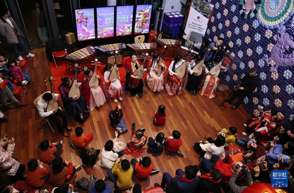 近日,位于巴黎塞纳河畔的巴黎中国文化中心举办“欢乐春节”游园联欢活动,300多名法国友人走进文化中心,了解中国春节传统文化习俗,共庆龙年春节。活动分为游园、观影、综艺、抽奖和美食等环节,很多游艺活动区排起长队,不少法国观众参与了汉服体验、书法、剪纸、包饺子、茶艺、拓印等文化游园项目。